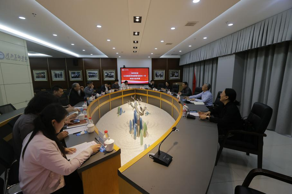交流会上,校长甄忠义对我校一行的到访表示了热烈地欢迎,并简要介绍了河北美术学院的办学历史、教育理念和办学特色,分享了他们在学科建设、专业设置等方面的宝贵经验。校长薛家宝对河北美术学院的热情接待表示了感谢,同时对河北美术学院在工作中的经验做法表示了赞赏。薛校长还就我校的办学理念、办学历程、发展规划同与会人员进行了深入交流。他表示,此次来访希望能学到好的经验和做法,进一步加强双方联系,相互学习,共同提高。