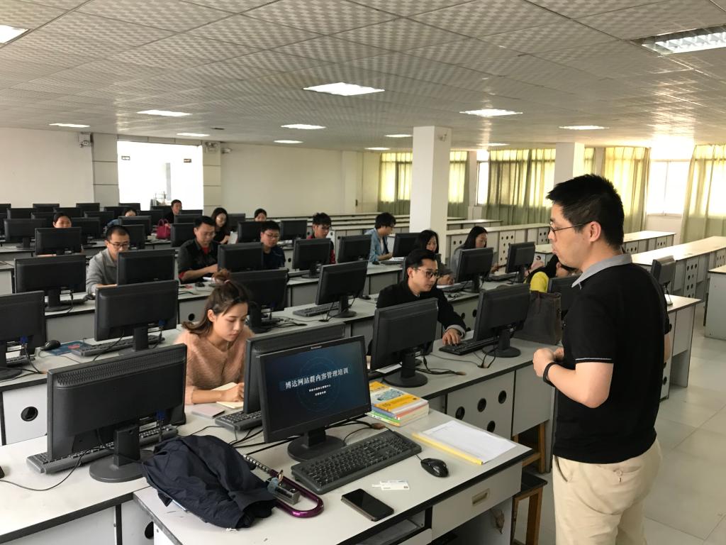 网络与信息化管理中心主任郭敦从新网站的功能模块和使用技巧做了详细介绍,对用户登录管理,网站内容管理,资料库管理等方面对网络管理员进行了培训,对校园网站建设相关流程作了说明,并对网站后台管理系统的使用流程进行了讲解和演示。