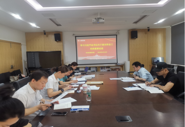 时尚传媒学院讯 时尚传媒学院于2024年5月10日在学院会议室召开2024年党委理论学习中心组(扩大)会议第四次会议,学院党委理论学习中心组全体成员、学院中层领导干部参加了学习。本次会议由党委副书记黄朝辉主持。