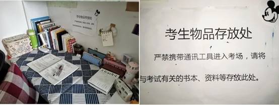 这张“考生物品存放处”的通知是我在初二时从结束的毕业考试考场上带回来的,它陪伴我度过了中考、高考,一直到2020这特殊的一年。我喜欢更换桌纸,有时是不用颜色的桌垫、不同花色的桌布,这一次我换了一张和风的蓝白相间桌布。桌子上摆放的的书籍由五颜六色的辅导书更换成了我喜爱花色的笔记本、喜欢看的时尚书籍、生动有趣的杂志......虽然这张书桌总是变化结构样式,但不变的是那张“考生物品存放处”带给我的警示,当我坐在桌前抬起头看见它便想起那时灼热的初心。