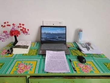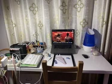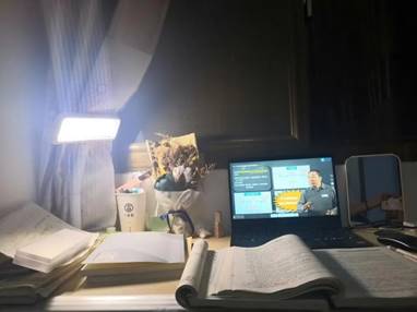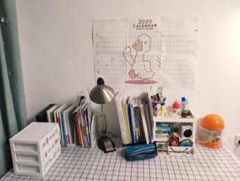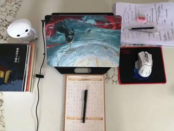 不知不觉线上教学已经一个月了,我们从刚开始的不知所措,到现在的轻车驾熟,同时也见证着书桌从“空无一物”到“一应俱全”,书桌作为知识的载体陪伴着我们的学习,见证了我们的成长,我们也有幸能从书桌上摆放的小物件,寻得生活中易被忽视的小美好。书籍凌乱的摆在桌面上,可是这凌乱的桌面却无法阻挡我对学习的渴望,一个准时的钟摆在桌面上,一张极其有条理的时间表粘贴在墙上,这便证明了我不是“佛系”青年,我有对知识的渴望,对未来的向往。