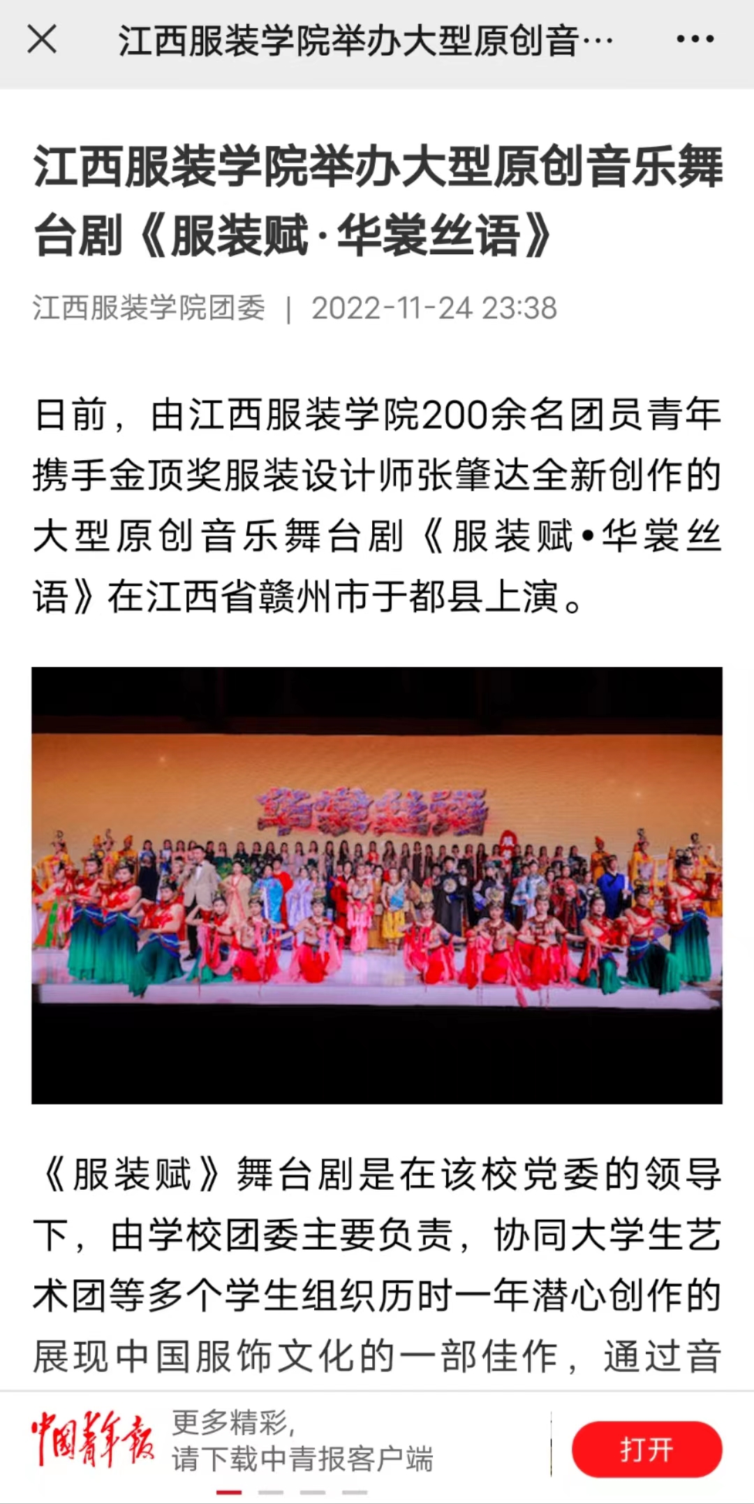 中国青年报:我校举办大型原创音乐舞台剧《服装赋·华裳丝语》