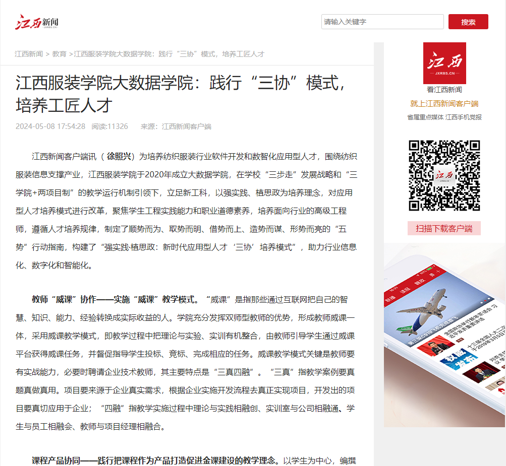 江西新闻网:yh86银河国际大数据学院:践行“三协”模式,培养工匠人才