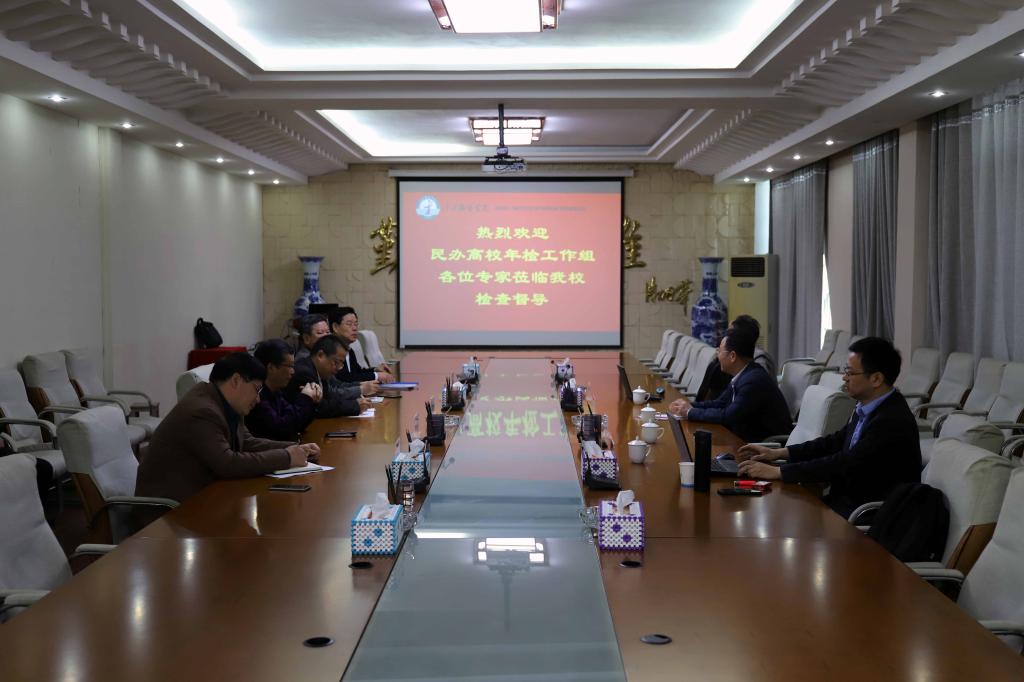 会上,熊明放处长简要介绍了此次检查工作的内容和要求。涂顺强副理事长对检查组莅临学校检查指导表示热烈欢迎,他在讲话时表示,学校即将接受国家教育部本科教学合格评估,很高兴接受教育厅对我校进行年检,这不仅是学校在迎评促建工作中的一次专家会诊,更是对学校工作的有力指导和推动。希望专家组多提宝贵意见和建议,学校可以进一步整改,不断提升办学水平和能力,促进教育教学、办学质量有新的提高。