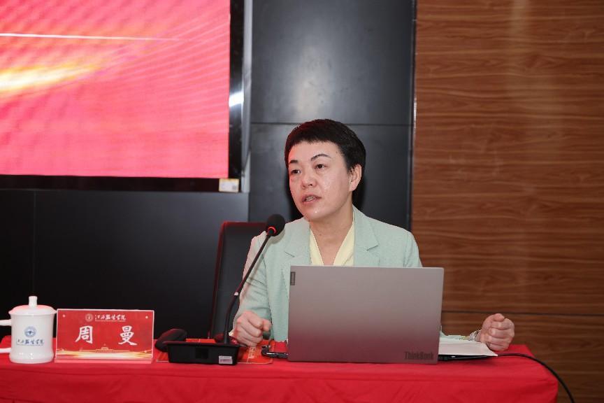 林井萍在总结讲话中指出,周曼教授为大家详细解读了如何在基层党建工作中强基创优、实现“一融双高”的目标,并结合高质量基层党建工作实践案例,分享了做好新时代高校党建工作的宝贵经验,给我们带来了一场高质量的报告,对进一步加强我校各学院党建品牌的打造具有很强的针对性和指导性。她要求学校各级党组织要加强党建引领,推动党建与业务深度融合;坚持上下联动,形成党建工作发展合力;坚持守正创新,提升党建工作质量水平,以高质量党建引领学校事业高质量发展。