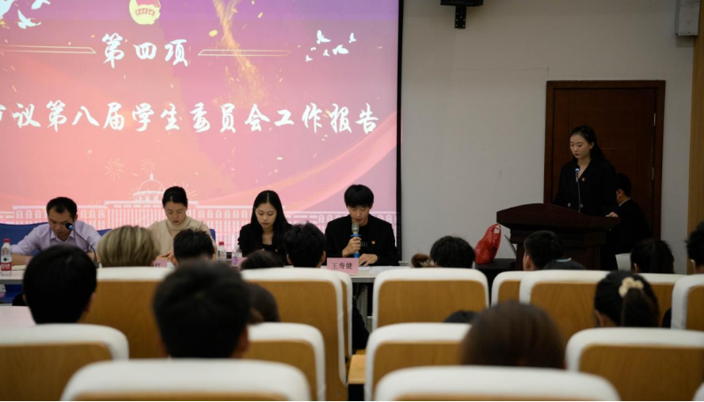 随后,时尚传媒学院学生会执行主席王寿健作第八届学生委员会工作报告。汇报主题:不忘初心跟党走,踔厉奋发新征程。团结带领全院同学在全面建设社会主义现代化强国实践中贡献时传青春力量!报告回顾了过去一年,我院学生会在院党委领导、校团委指导下开展的一系列学生工作,针对学生会改革、思想政治引领、帮助服务同学、校园文化建设、聚焦主责主业等方面进行了全方位的总结。归纳了以往的工作经验,同时为未来的学生会工作指明了方向。