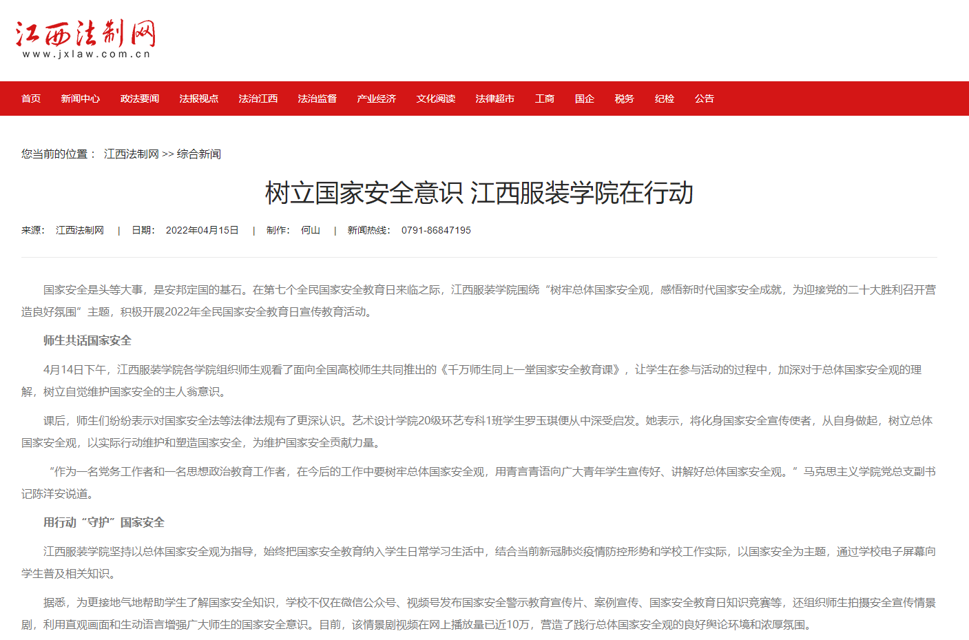 江西法制网:树立国家安全意识 yh86银河国际在行动