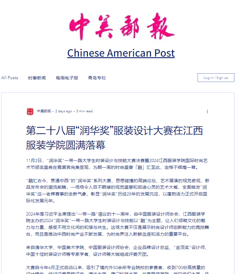 中美邮报:第二十八届“润华奖”服装设计大赛在yh86银河国际圆满落幕